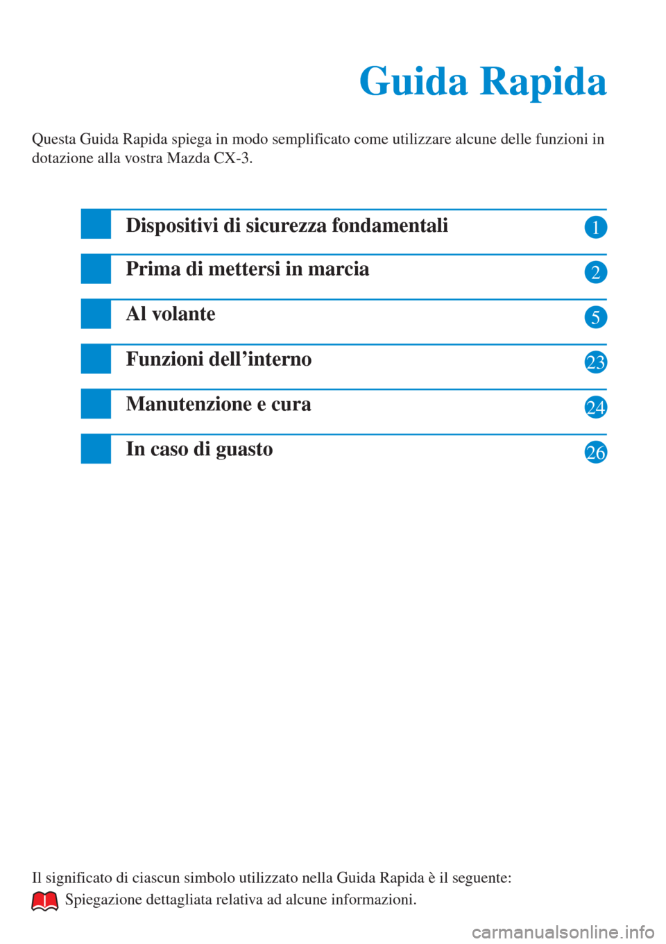 MAZDA MODEL CX-3 2016 Guida Rapida (in Italian)
