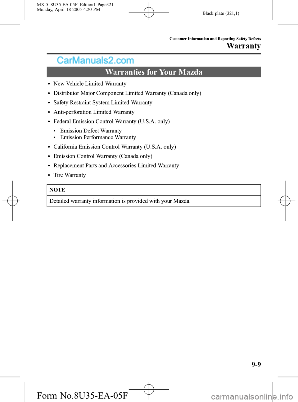 MAZDA MODEL MX-5 2006 Owners Manual (in English)