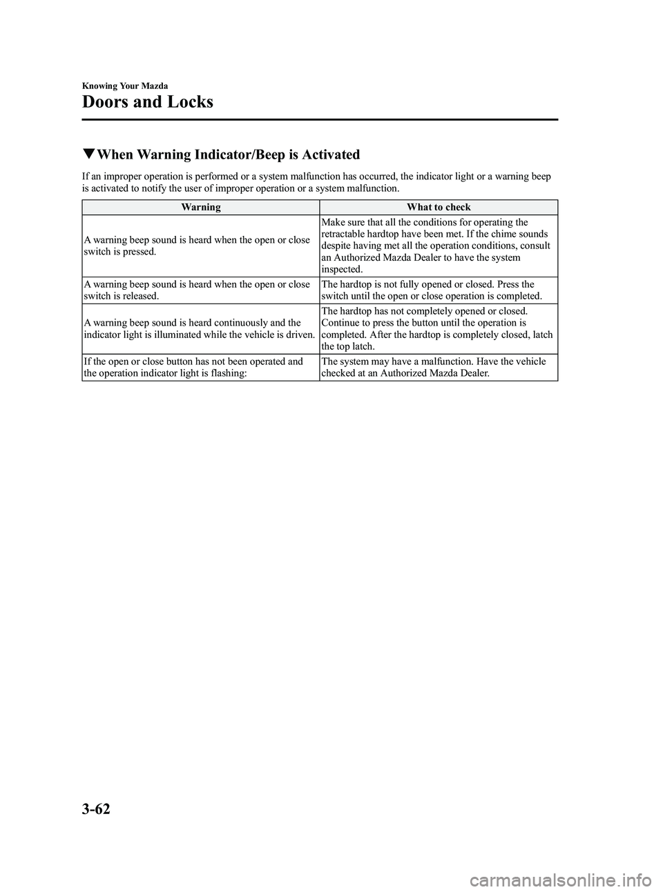 Hardtop on page 3-52. Closing the deck