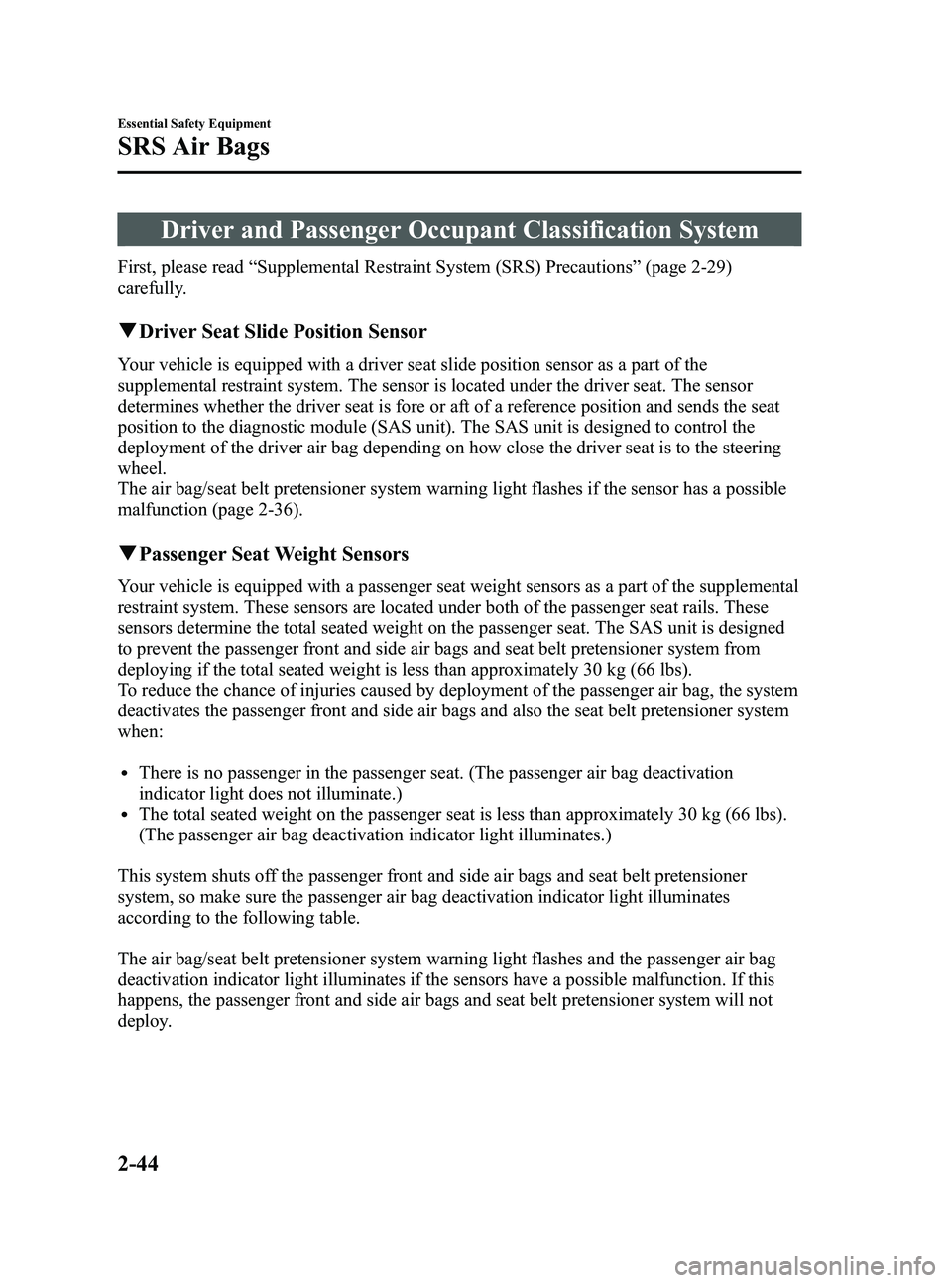 Have the passenger air bag deactivation switch inspected by an Authorized Mazda Dealer if any of