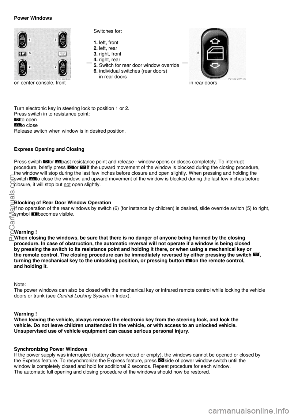 If no operation of the rear windows by switch (6) (for instance by children) is desired, slide override switch (5) to right,