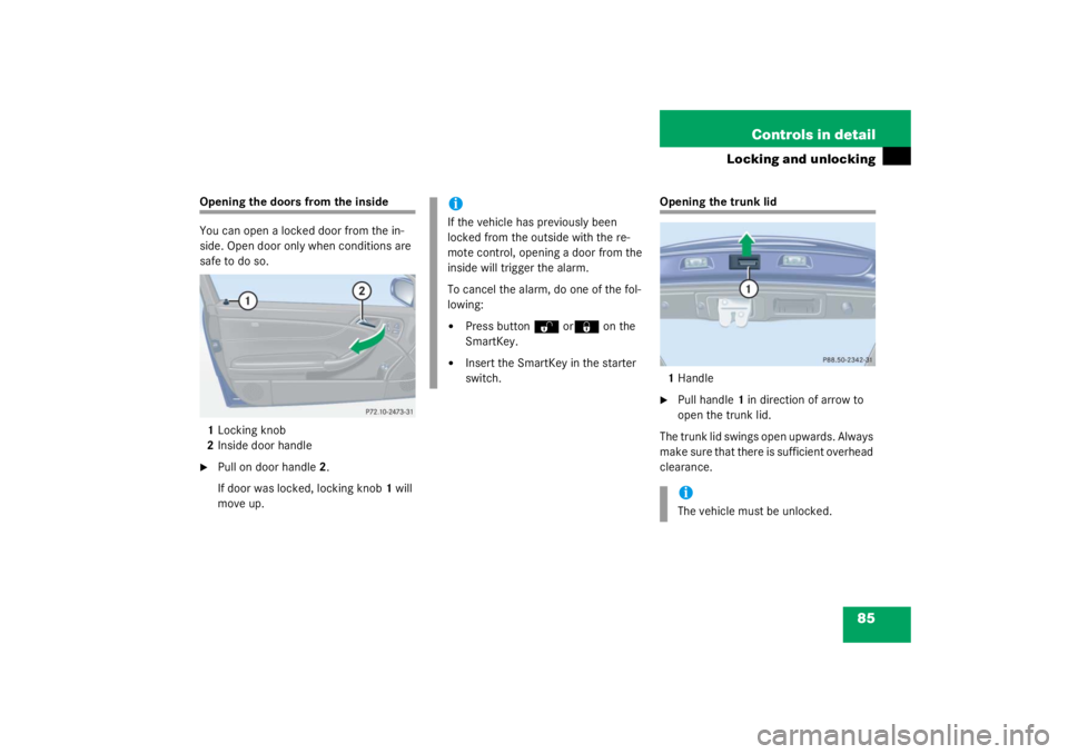 MERCEDES-BENZ C CLASS COUPE 2003  Owners Manual 85