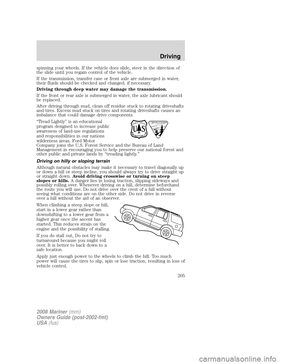 Mercury Mariner 2008  Owners Manuals spinning your wheels. If the vehicle does slide, steer in the direction of