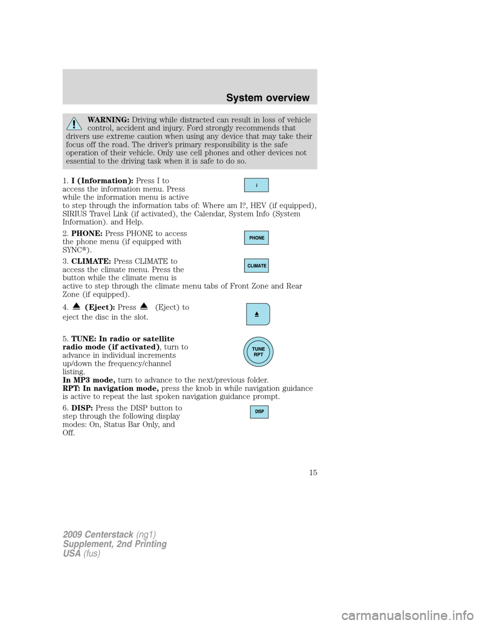 Mercury Milan 2010  Navigation System Supplement WARNING:Driving while distracted can result in loss of vehicle
