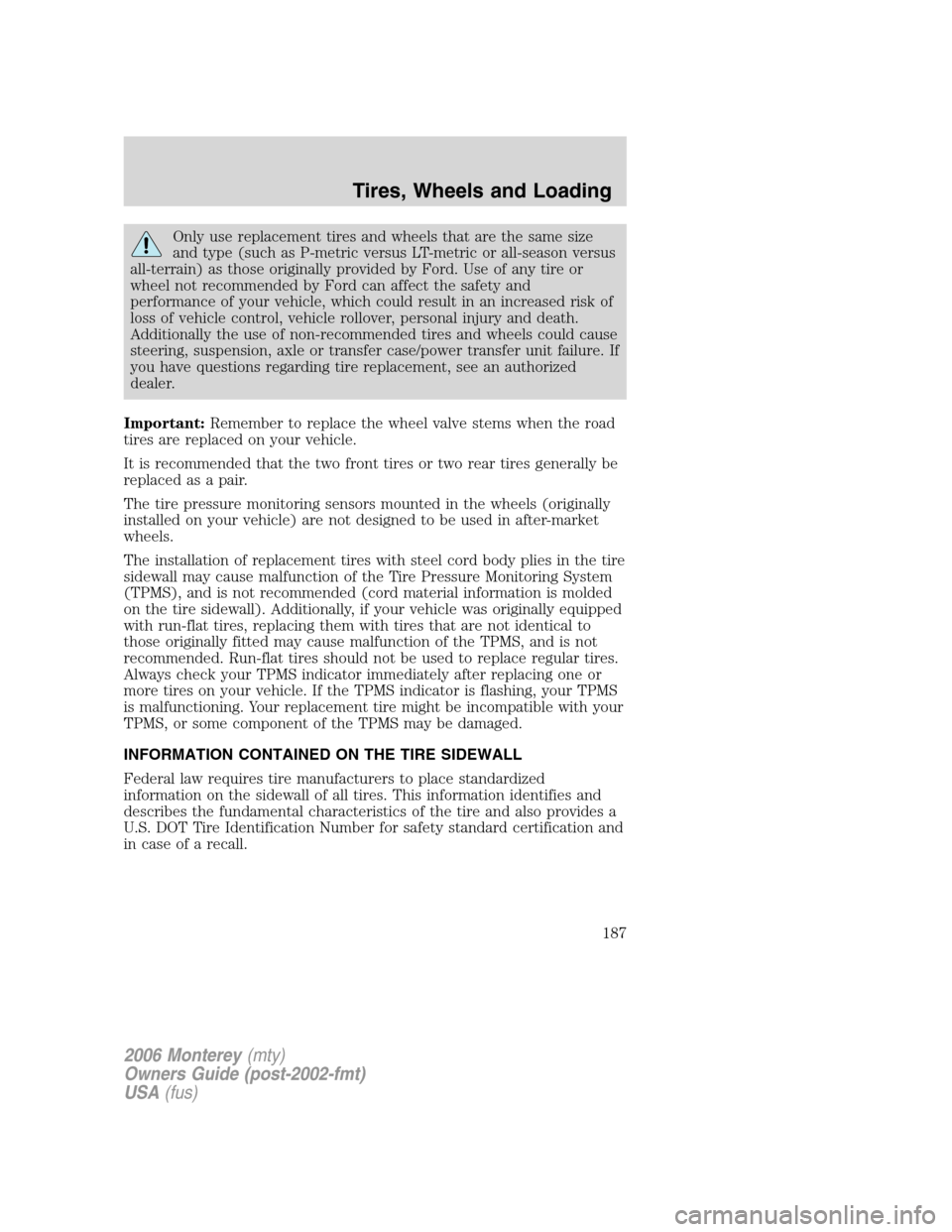 TPMS Mercury Monterey 2006 Owner's Manuals