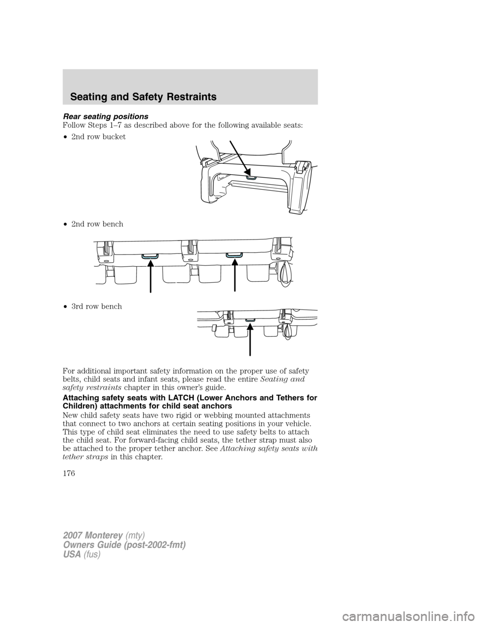 Mercury Monterey 2007  Owners Manuals Rear seating positions