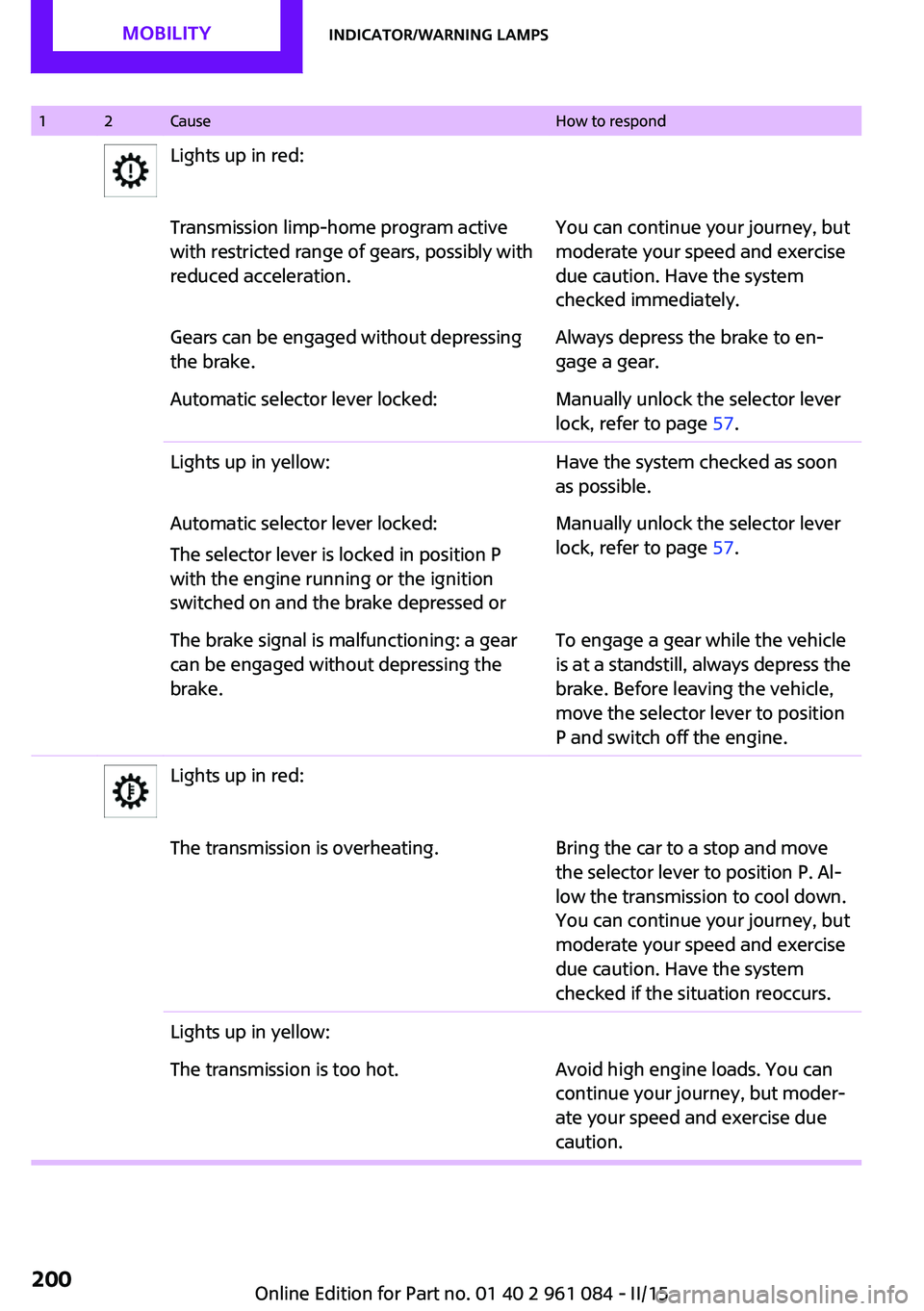 fer to page 169.Seite 192MOBILITYIndicator/warning lamps192