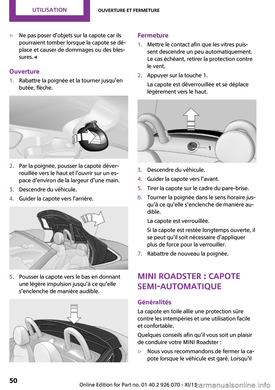 de conduire votre MINI Roadster :▷Nous vous recommandons de fermer la ca‐