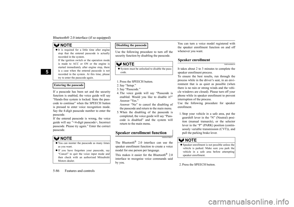 Bluetooth® 2.0 interface (if so equipped) 5-86 Features and controls