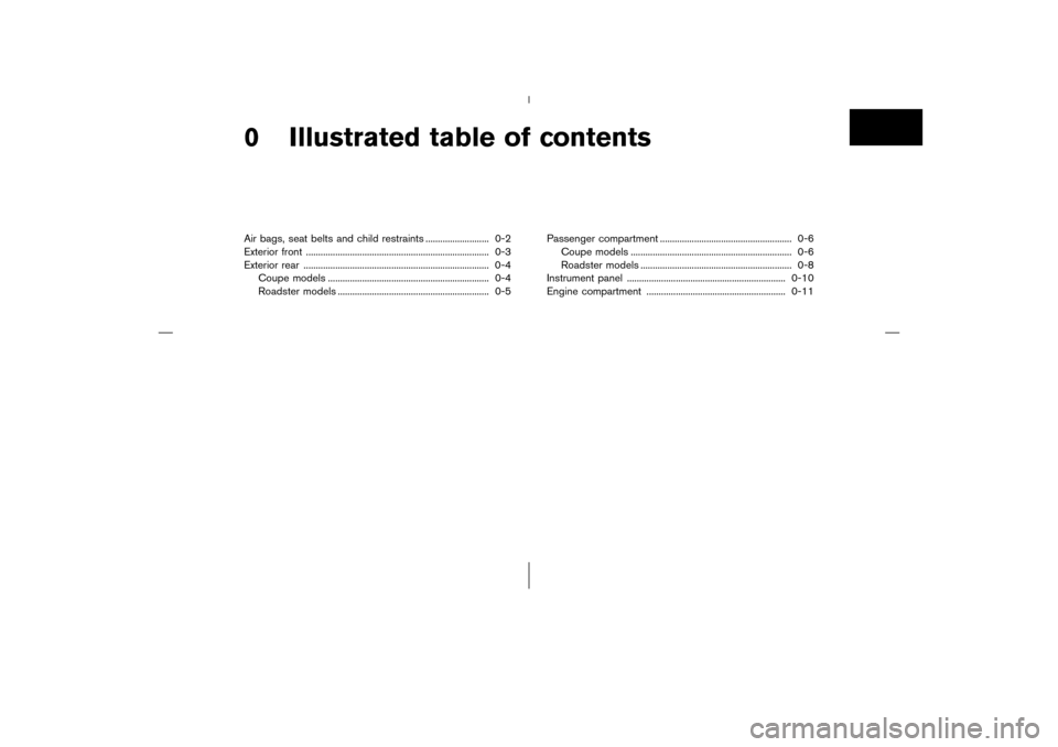 NISSAN 350Z 2006 Z33 Owners Manual 0 Illustrated table of contentsAir bags, seat belts and child restraints .......................... 0-2