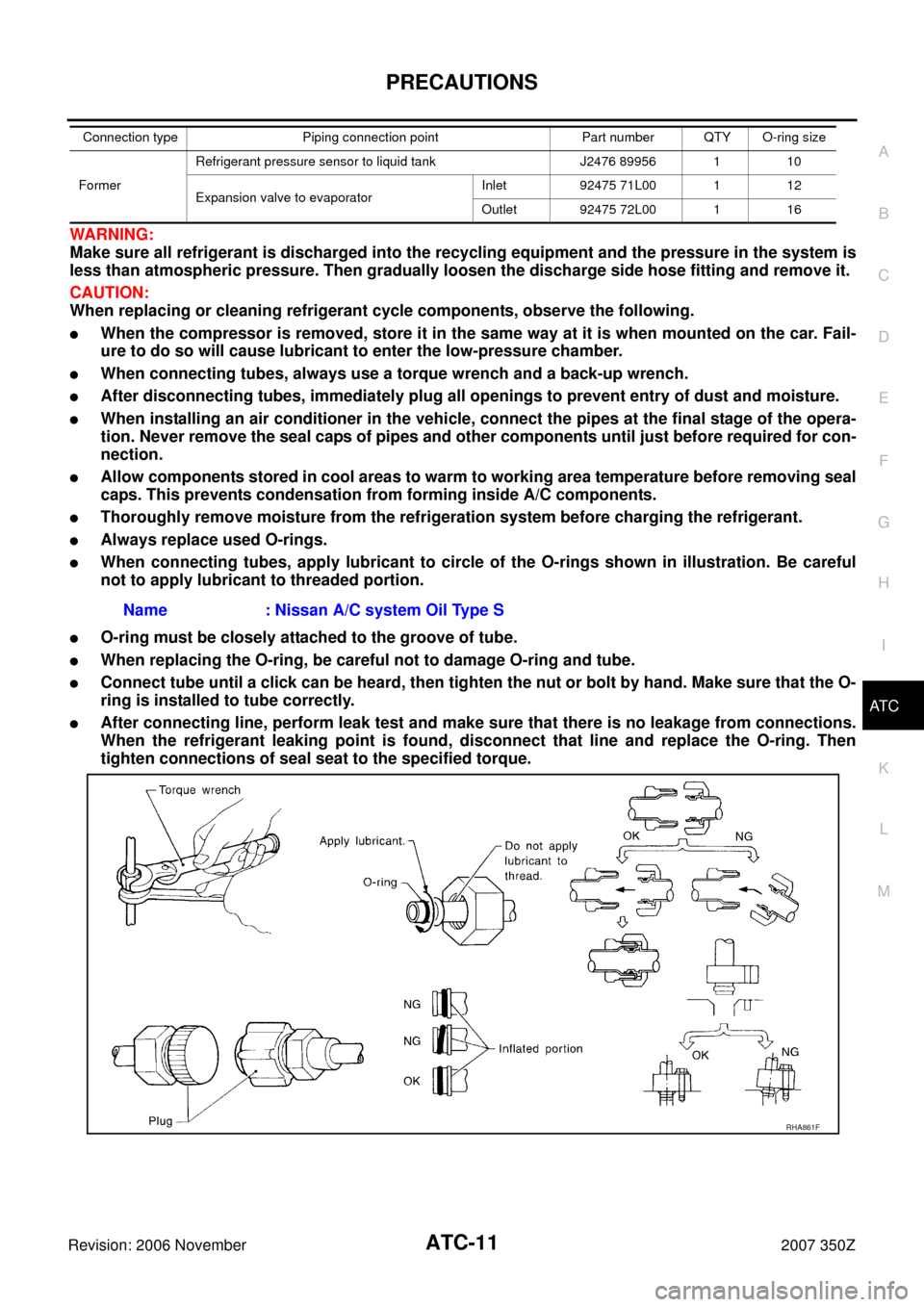 NISSAN 350Z 2007 Z33 Automatic Air Conditioner User Guide PRECAUTIONS