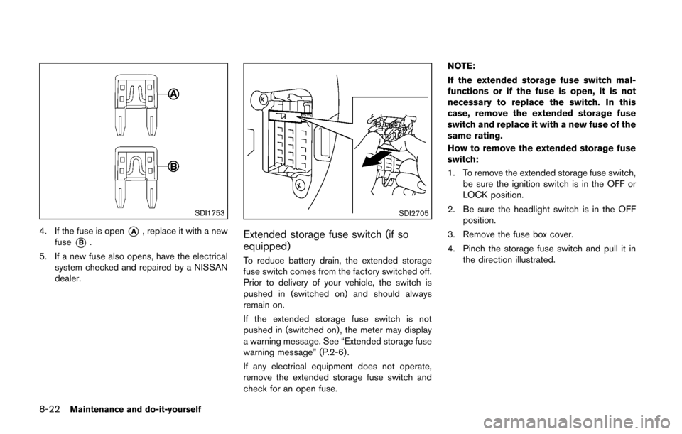 8. If a new fuse also opens, have the electrical system checked and repaired by a NISSAN