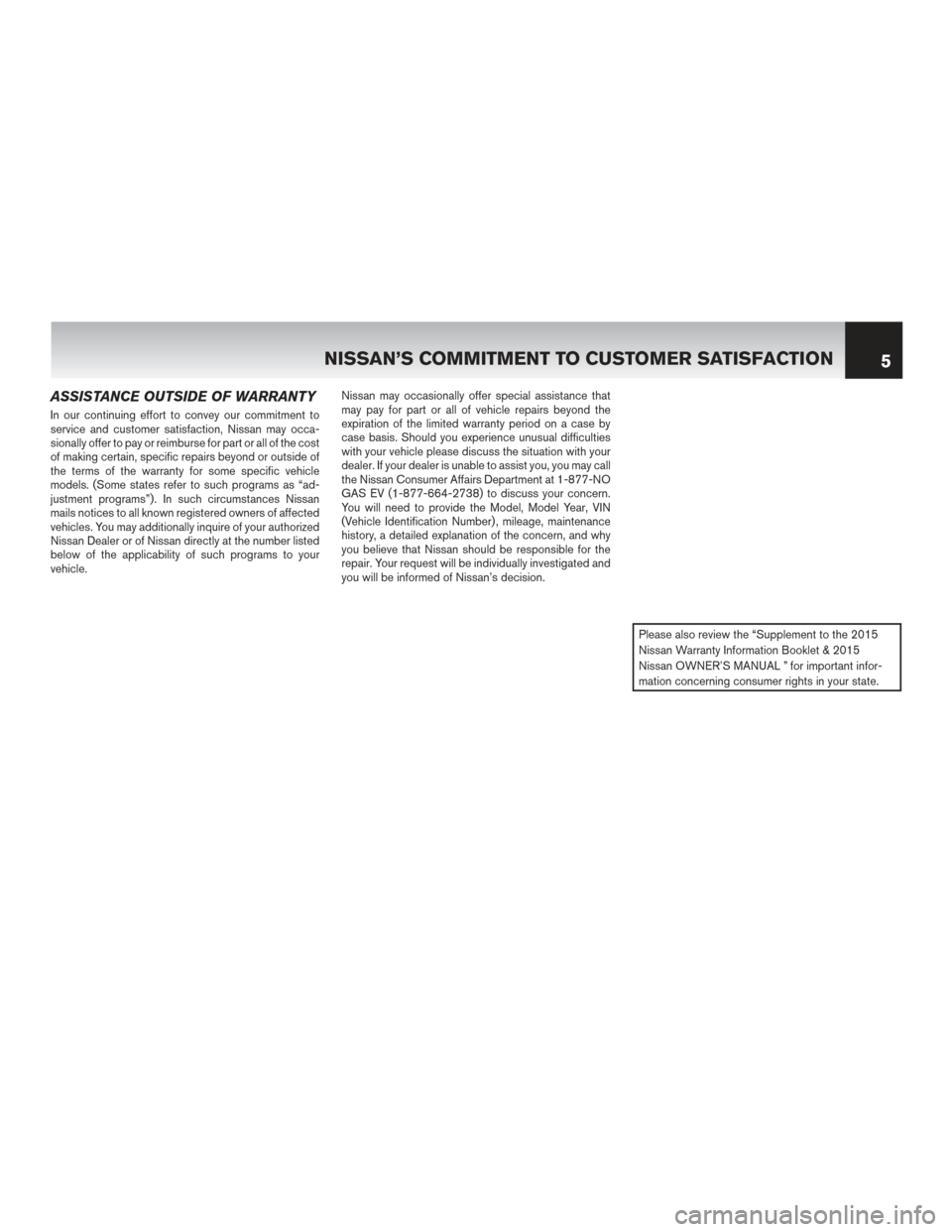 NISSAN LEAF 2015 1.G Warranty Booklet ASSISTANCE OUTSIDE OF WARRANTY