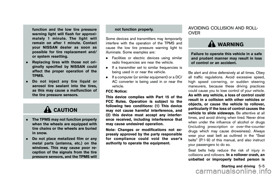 NISSAN ROGUE SELECT 2015  Owners Manual function and the low tire pressure