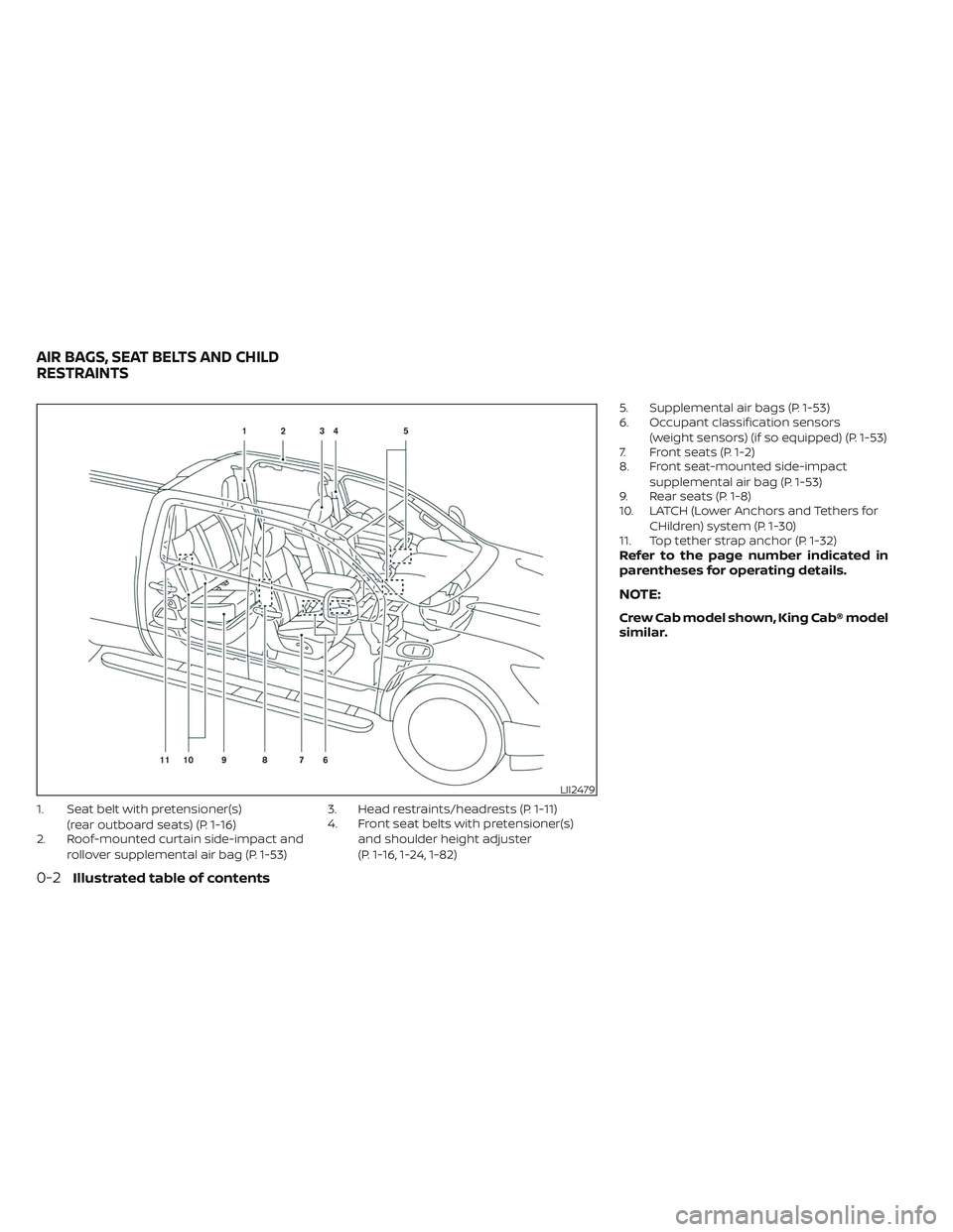 (P. 1-16, 1-24, 1-82) 5. Supplemental air bags (P. 1-53)