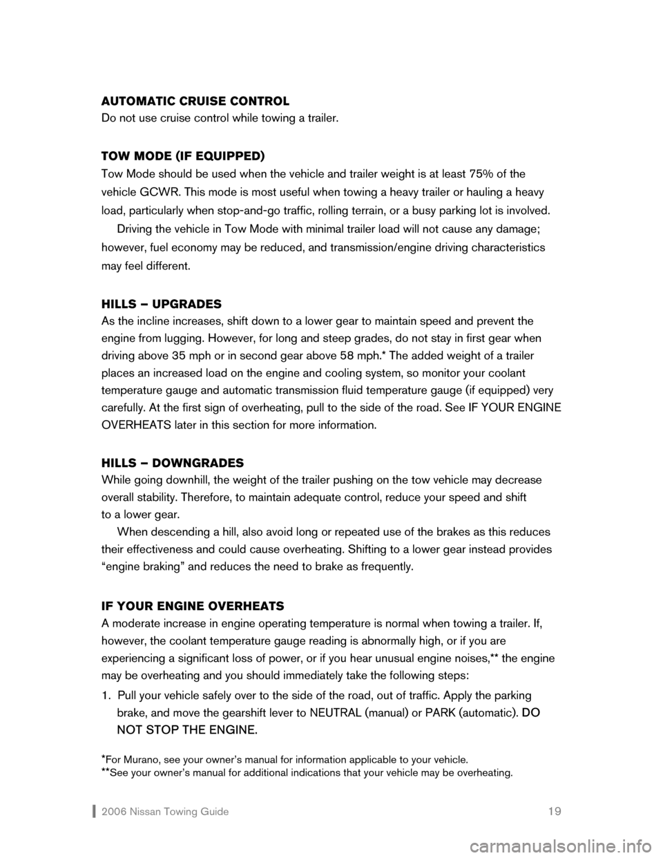 2006 Nissan Towing Guide 19 AUTOMATIC CRUISE CONTROL
