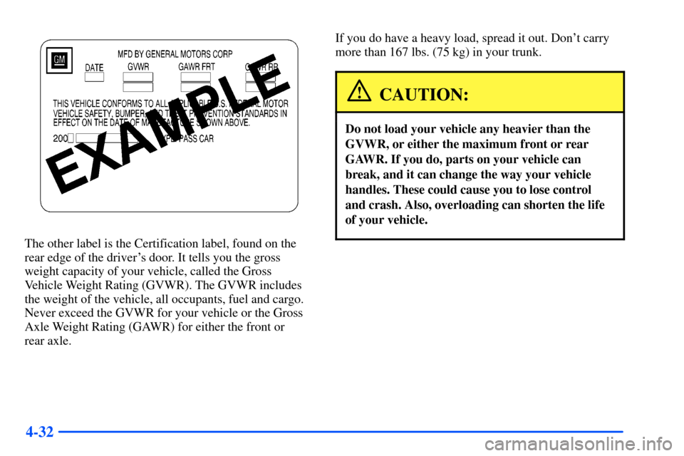 load capacity Oldsmobile Intrigue 2001 Owner's Manuals