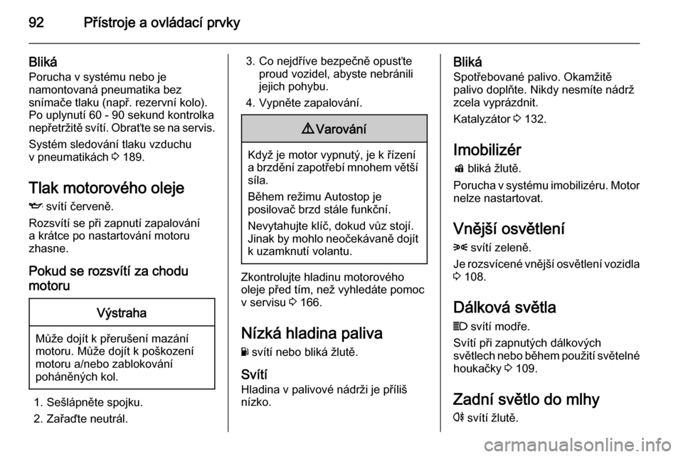 Pokud bliká za chodu motoruZávada, která může vést k poškození katalyzátoru. Uvolněte plynový pedál