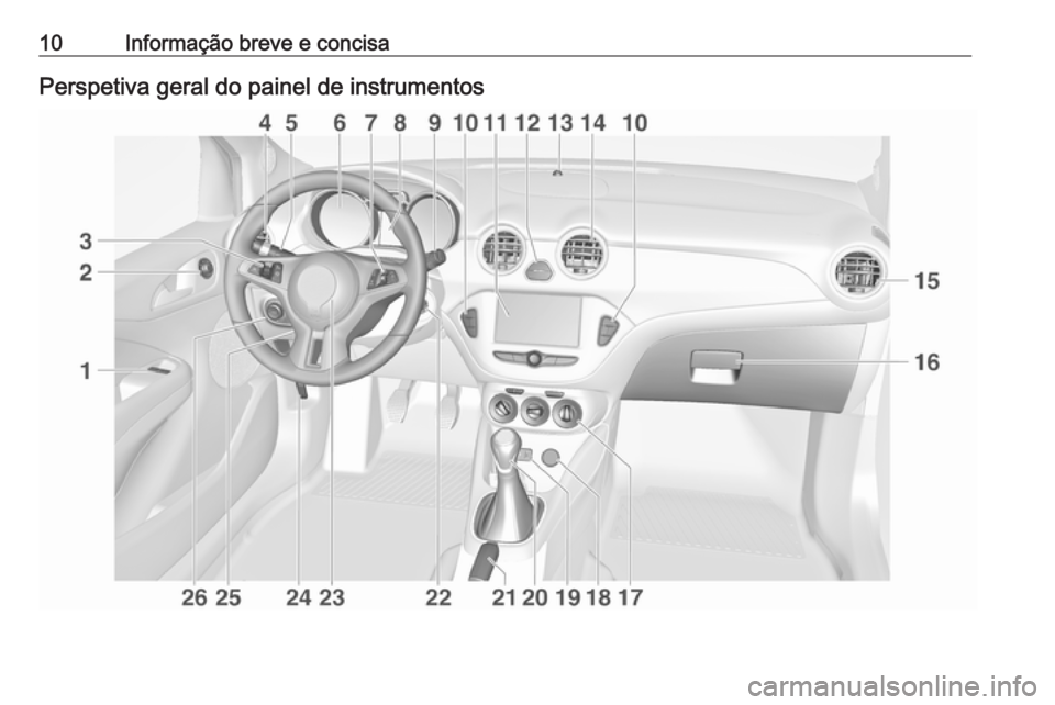 10Informação breve e concisaPerspetiva geral do painel de instrumentos