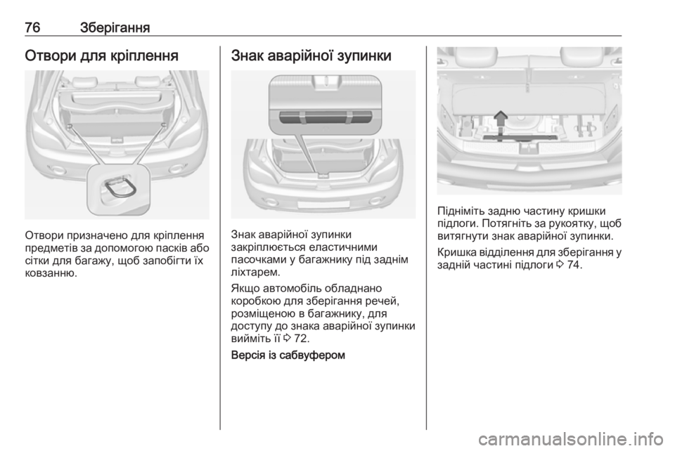 ● Зафіксуйте предмети в багажному відділенні, щоб