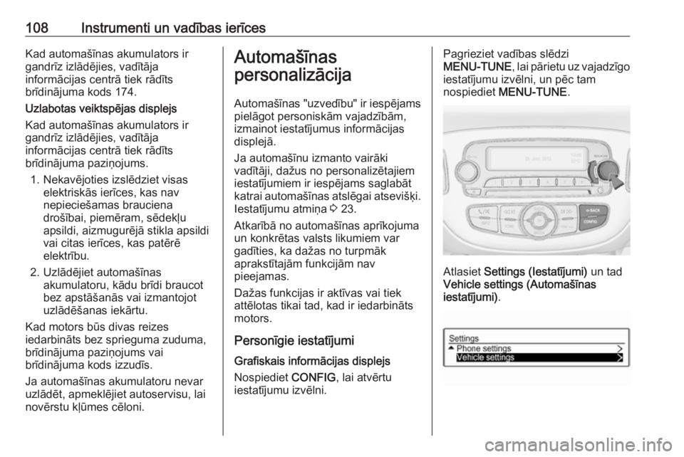 108Instrumenti un vadības ierīcesKad automašīnas akumulators ir