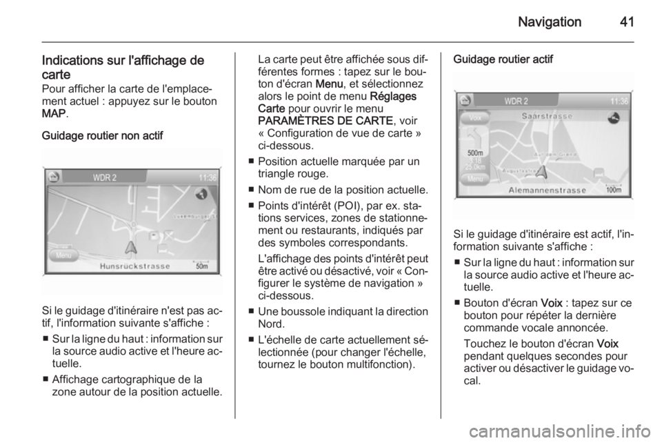 La carte peut être affichée sous dif‐ férentes formes : tapez sur le bou‐ton d'écran Menu et sélectionnez