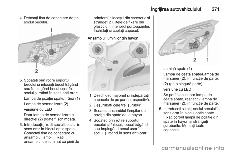 274Îngrijirea autovehiculului4. Trageţi becul din soclu şiînlocuiţi-l.