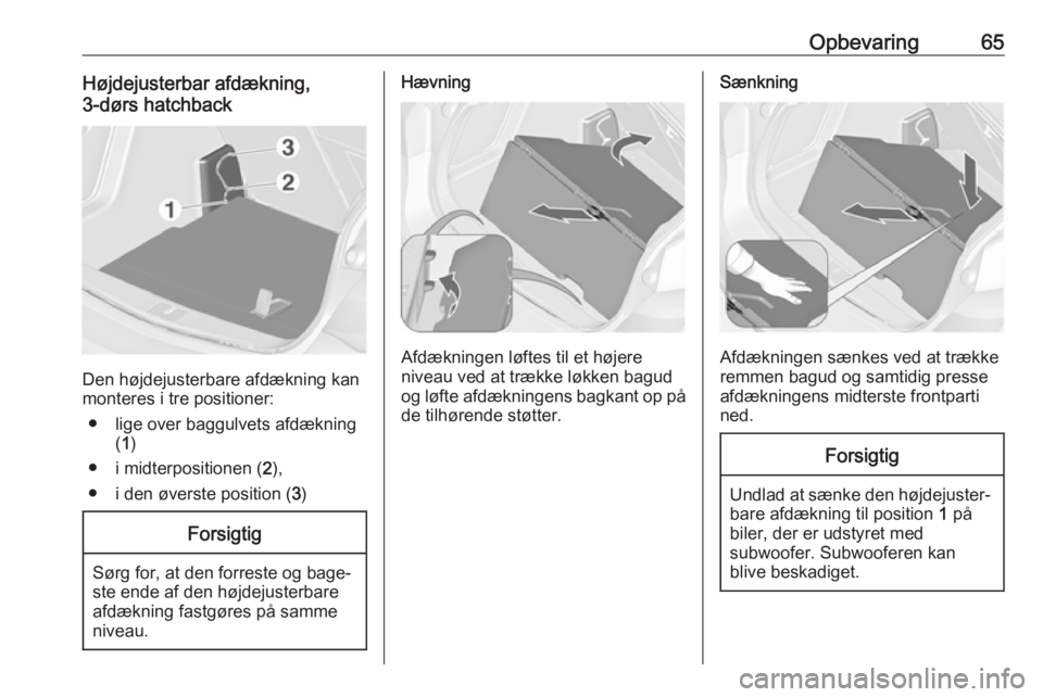 Udvidelse af bagagerum ● Kun 3-dørs hatchback: fjern last‐ rumsdækkenet, hvis det er