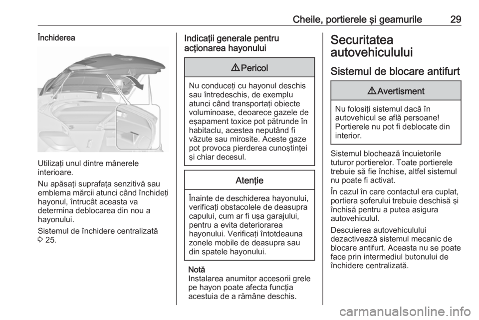 Cheile, portierele şi geamurile311. Închideţi hayonul, capota,geamurile şi trapa de acoperiş.