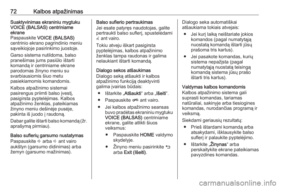 72Kalbos atpažinimasSuaktyvinimas ekraniniu mygtukuVOICE (BALSAS) centriniame