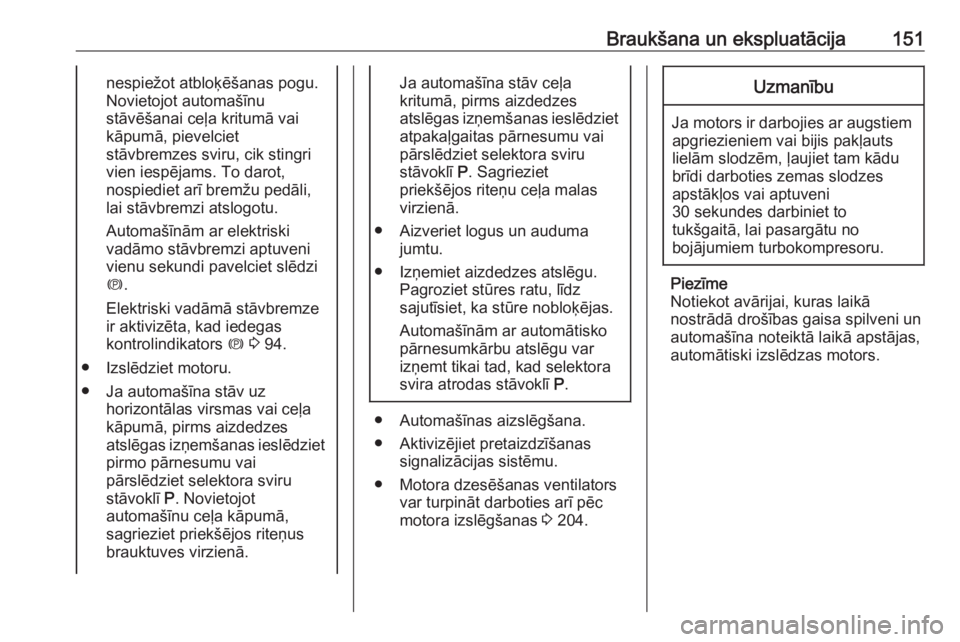 Braukšana un ekspluatācija149Motors tiks izslēgts, bet aizdedze