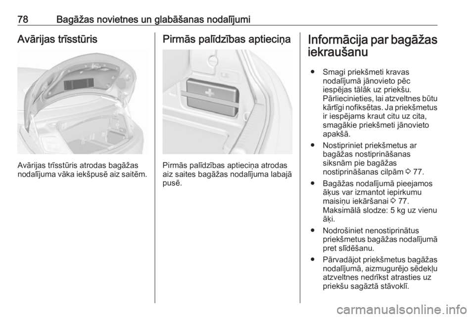 78Bagāžas novietnes un glabāšanas nodalījumiAvārijas trīsstūris