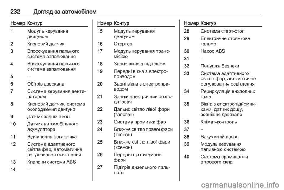 232Догляд за автомобілемНомерКонтур1Модуль керування