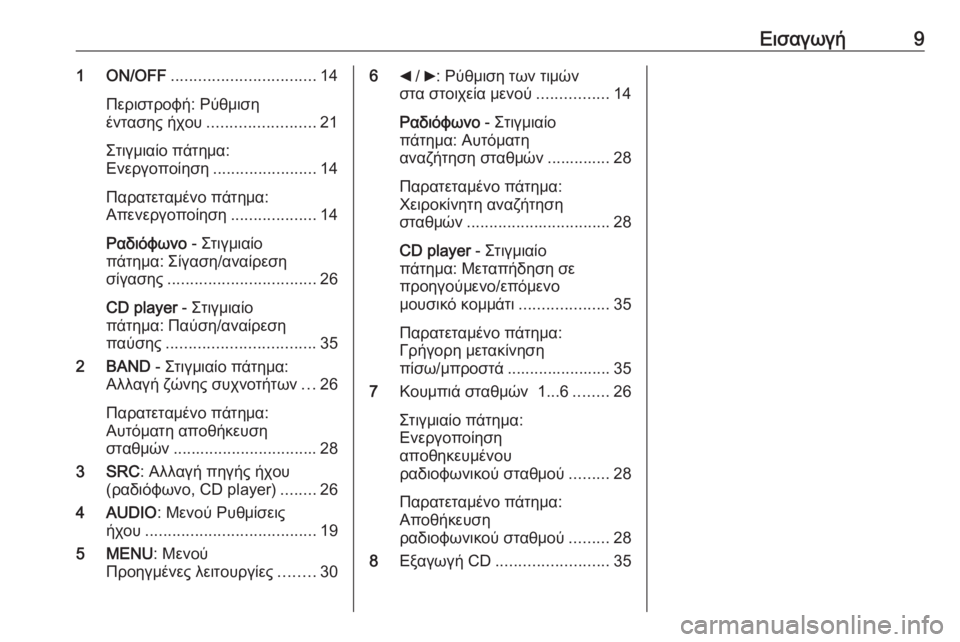 10ΕισαγωγήΧειριστήρια συστήματος Ιnfotainment - Ραδιόφωνο με CD player / MP3 player