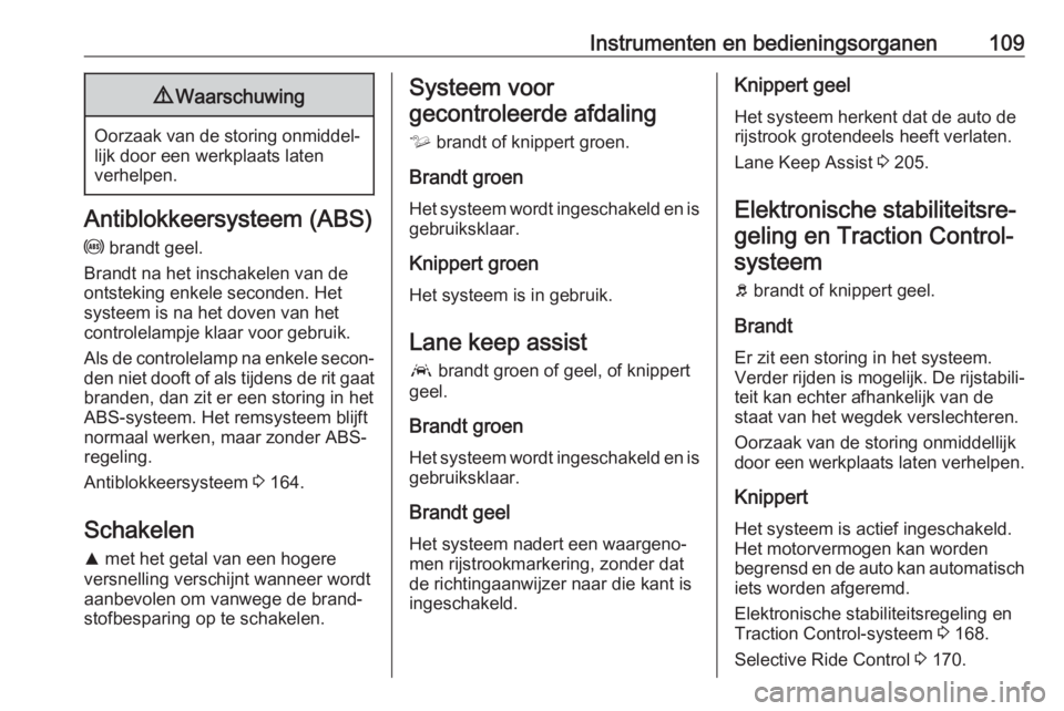 Controlelampen ..................102, 105