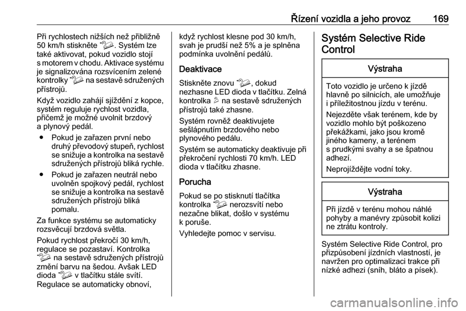 Řízení vozidla a jeho provoz169Při rychlostech nižších než přibližně