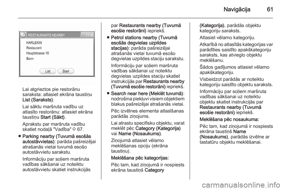 atrašanās vietai tuvumā esošo autostāvvietu sarakstu.