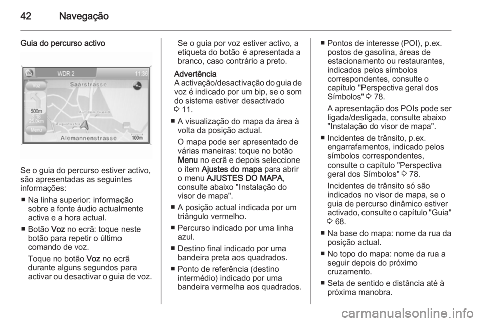 e no caso de o guia de percurso estar activo: