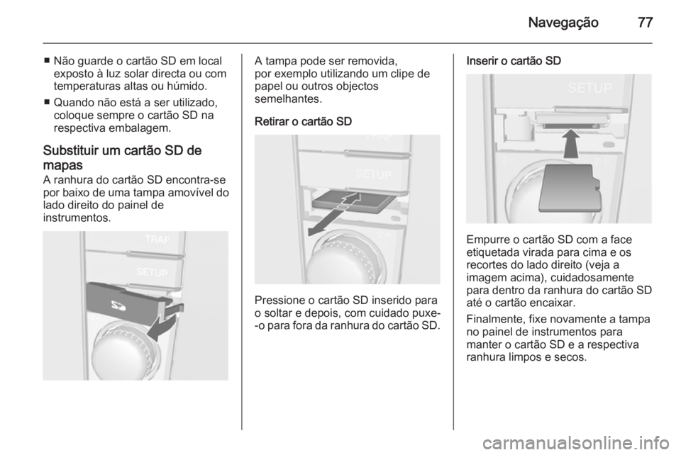 Substituir um cartão SD de mapas A ranhura do cartão SD encontra-se