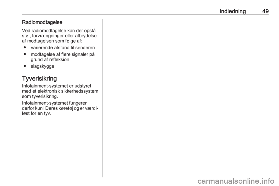 Indledning49RadiomodtagelseVed radiomodtagelse kan der opståstøj, forvrængninger eller afbrydelse