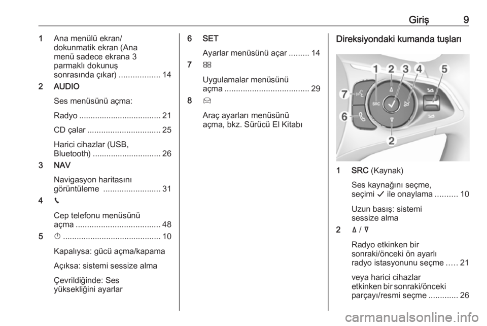açma, bkz. Sürücü El KitabıDireksiyondaki kumanda tuşları