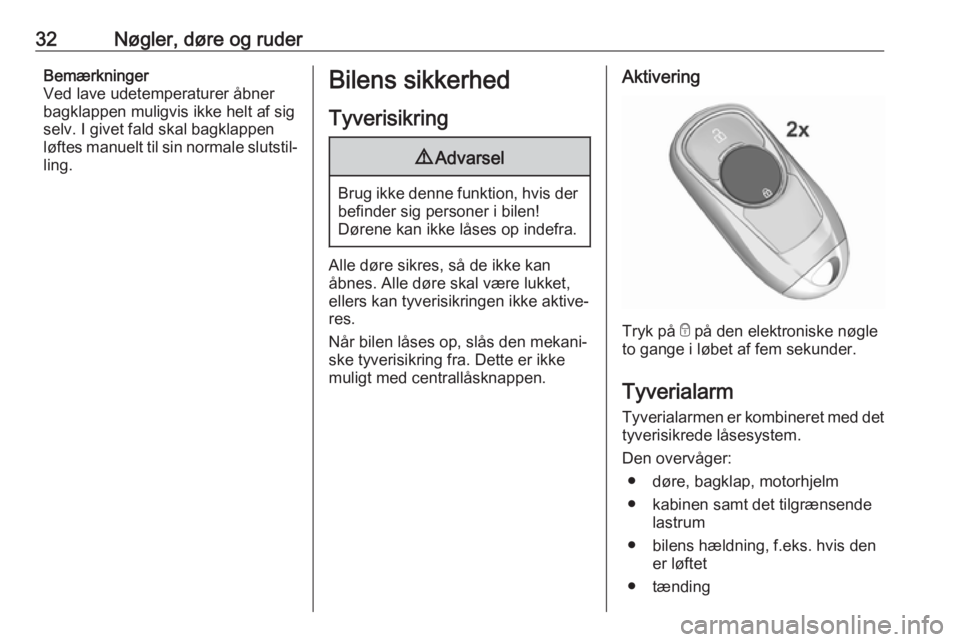 30Nøgler, døre og ruder●tryk på C på den åbne bagklap