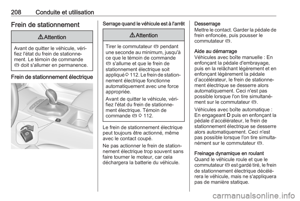 208Conduite et utilisationFrein de stationnement9Attention