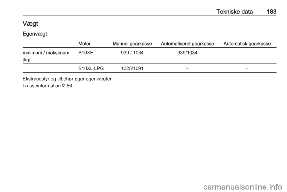 Tekniske data181MotordataMotorens typebetegnelseB10XEB10XL LPGSalgsbetegnelse1.01.0 LPGSlagvolumen [cm3