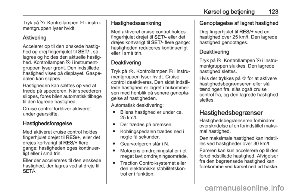 Den maksimale hastighed kan indstil‐ les ved hastigheder over 30 km/t.