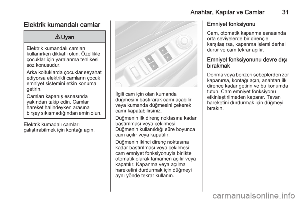 Anahtar, Kapılar ve Camlar31Elektrik kumandalı camlar9Uyarı