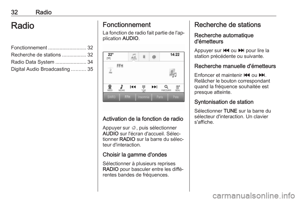 La fonction de radio fait partie de l'ap‐ plication AUDIO.