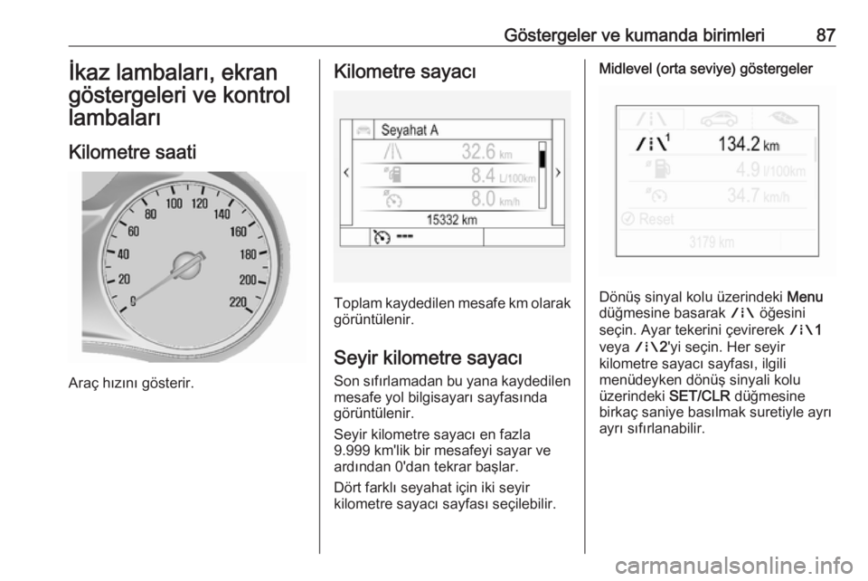 Göstergeler ve kumanda birimleri87İkaz lambaları, ekrangöstergeleri ve kontrollambaları
