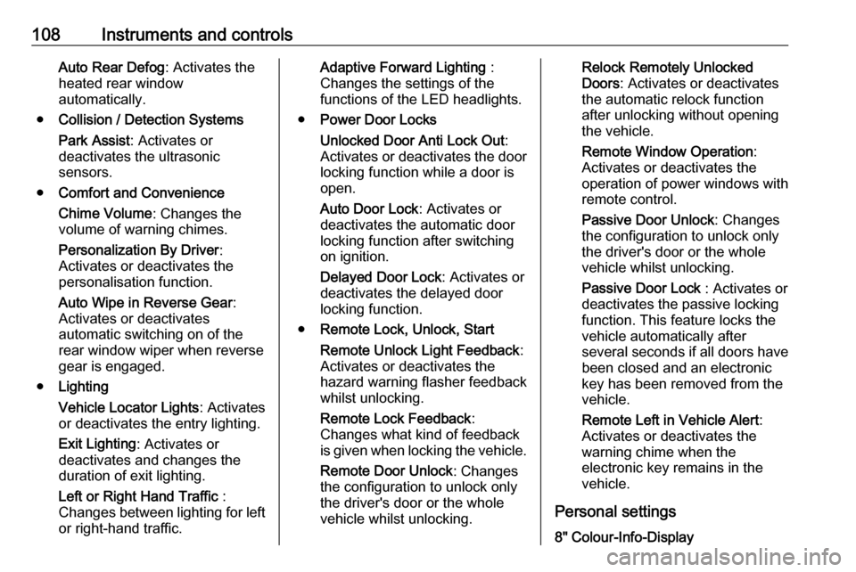 108Instruments and controlsAuto Rear Defog: Activates the