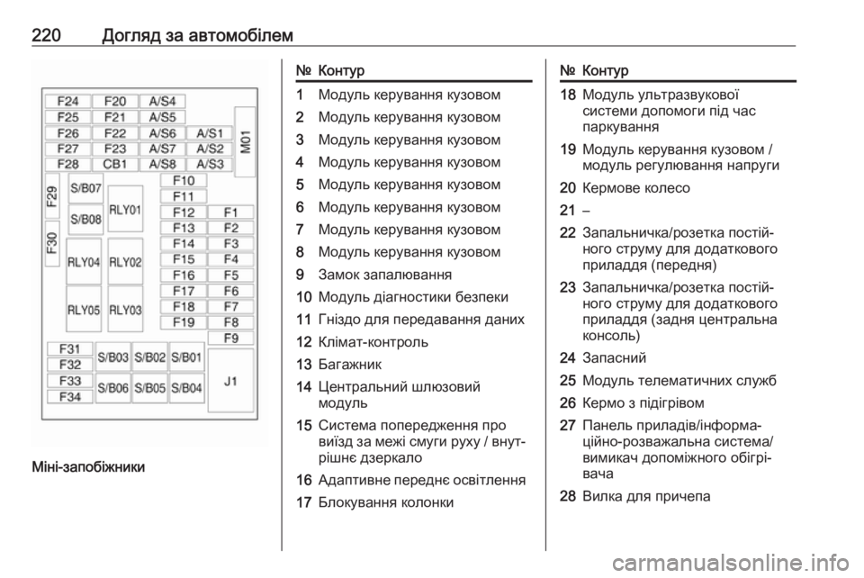 Догляд за автомобілем219№Контур16Підігрів сидінь17Пульт дистанційного управ‐